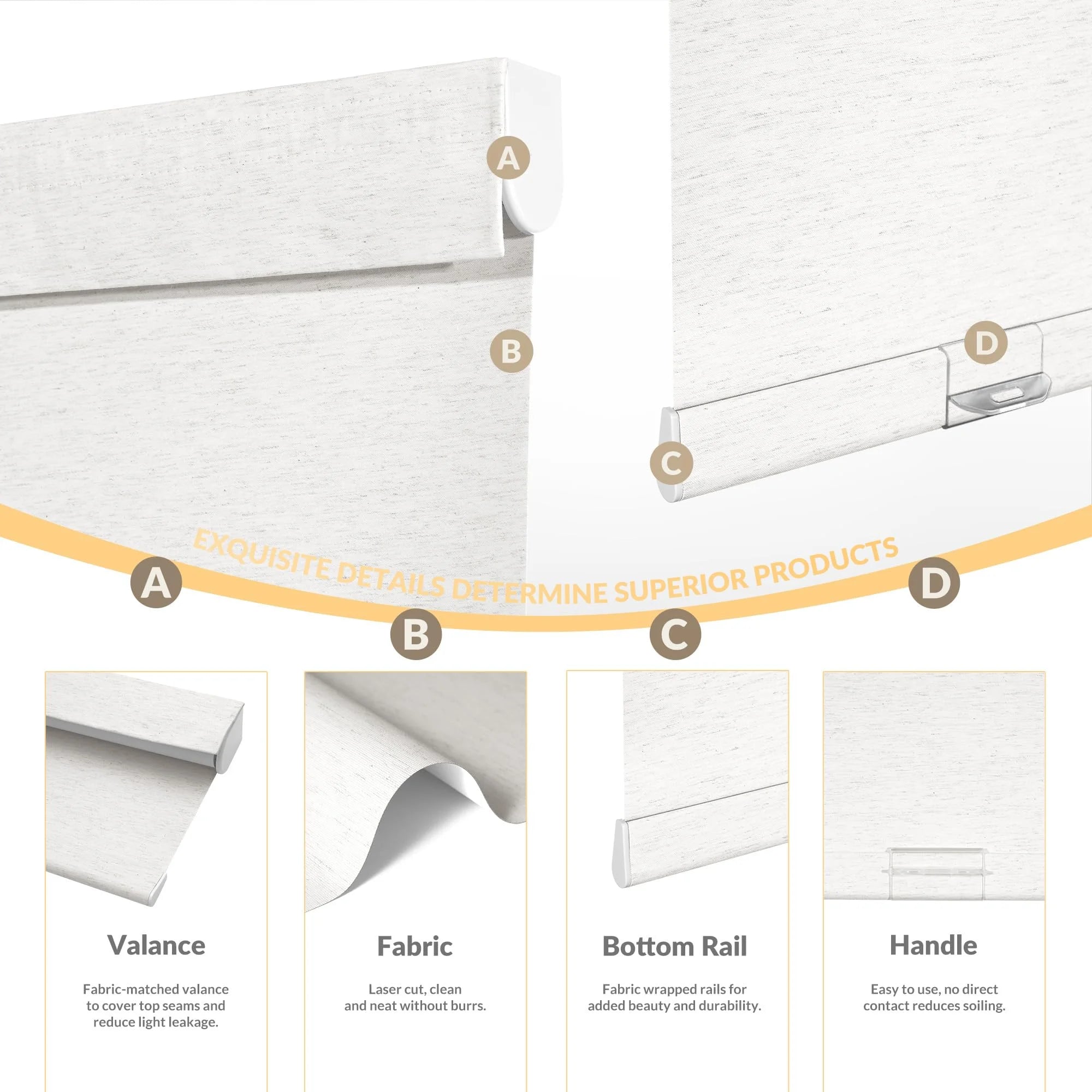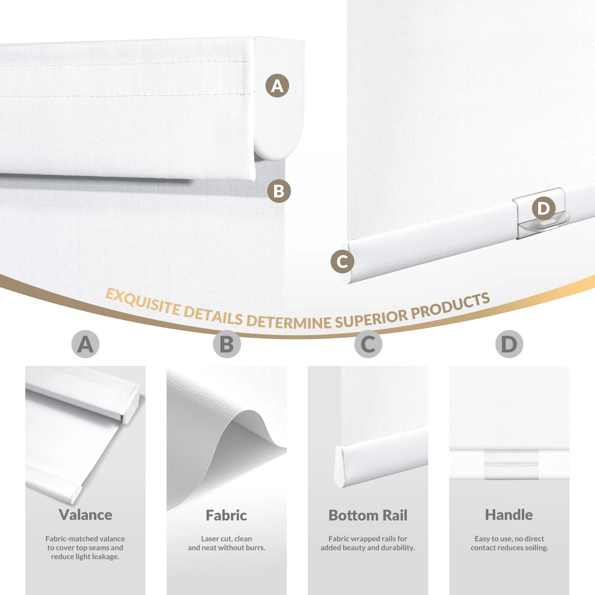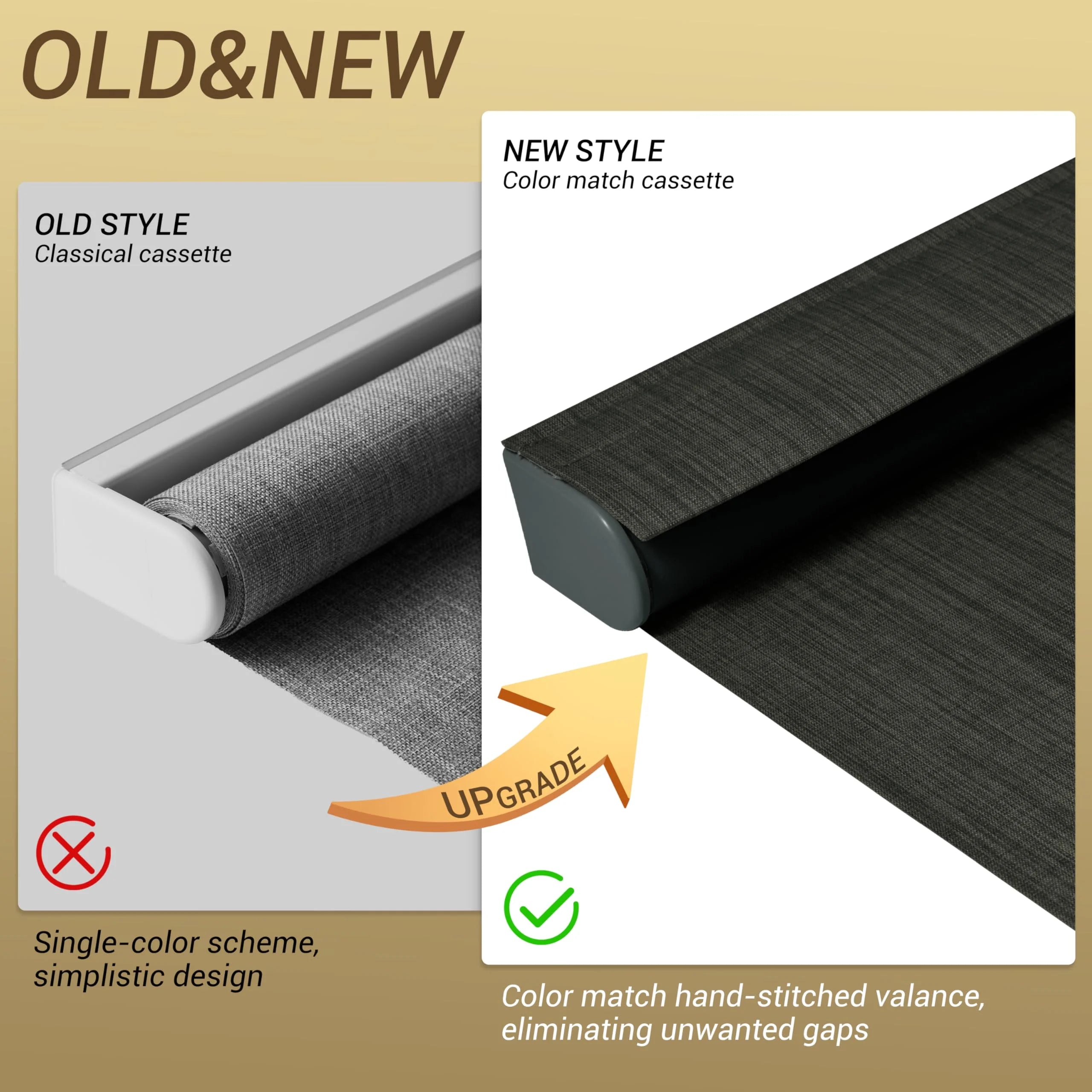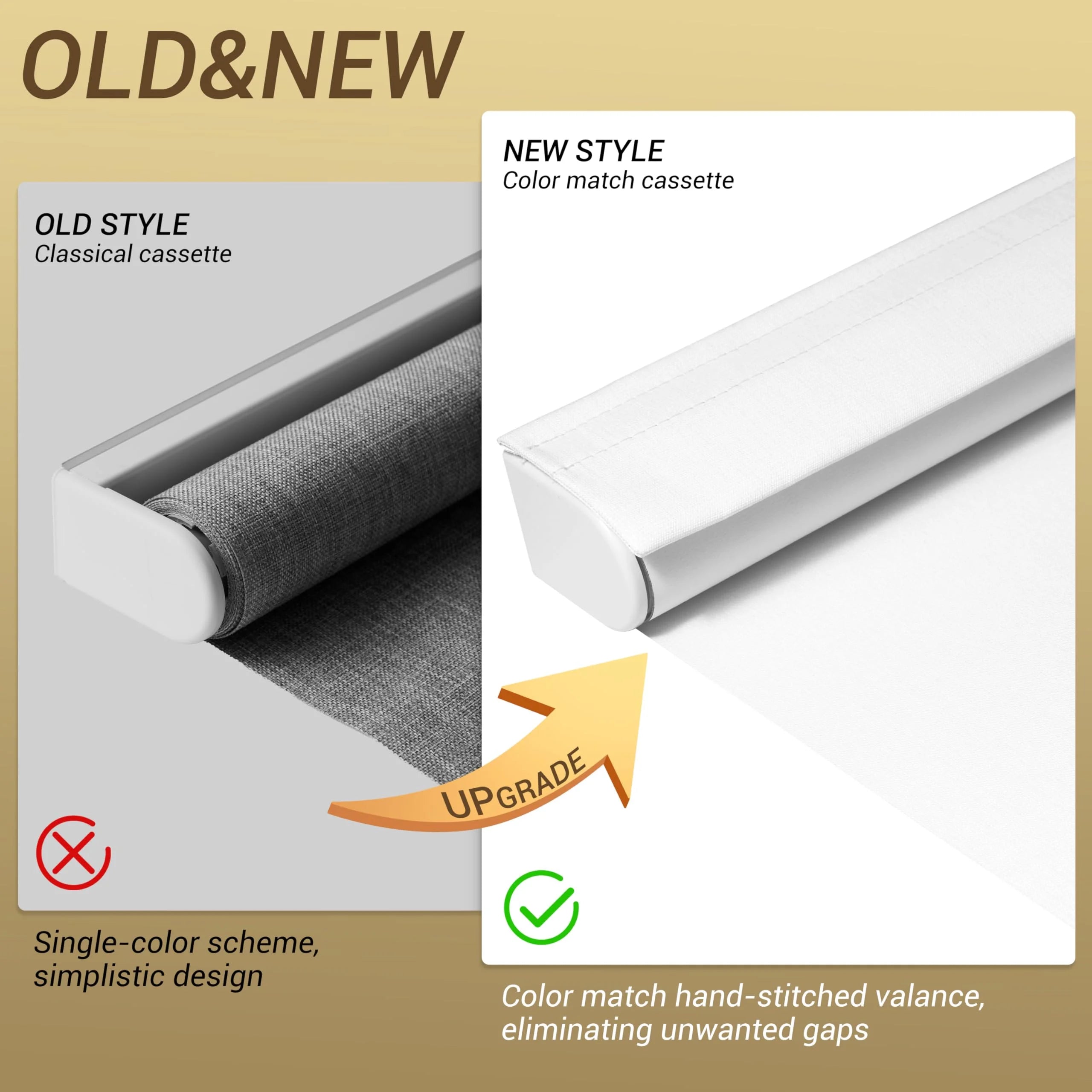Our upgraded headrail fits tighter to reduce light leakage and looks more finished, while typical shades leave visible gaps and let light in.