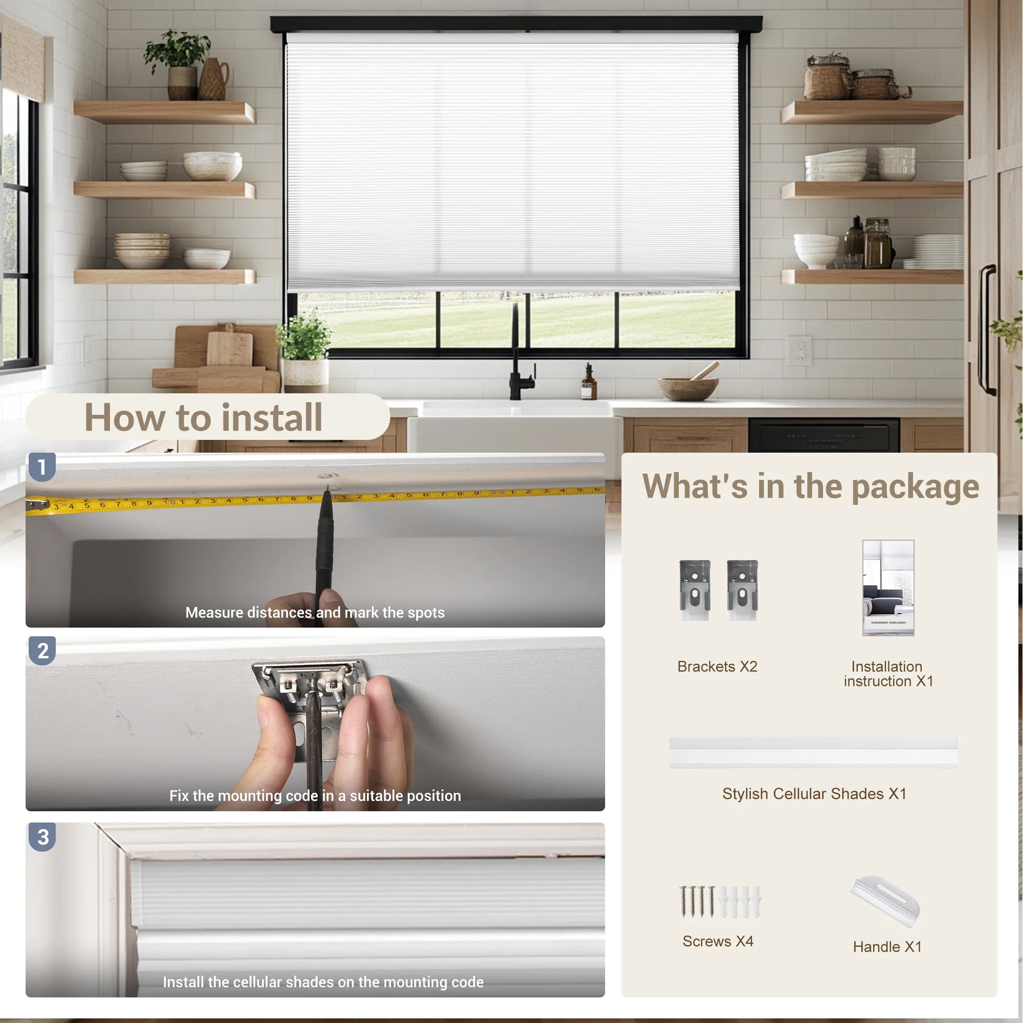 | What's included | Cellular Shade, Handle, Installation Manual |