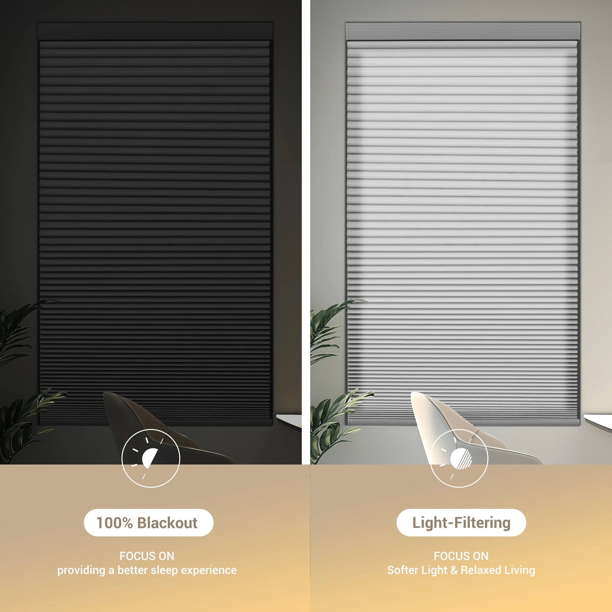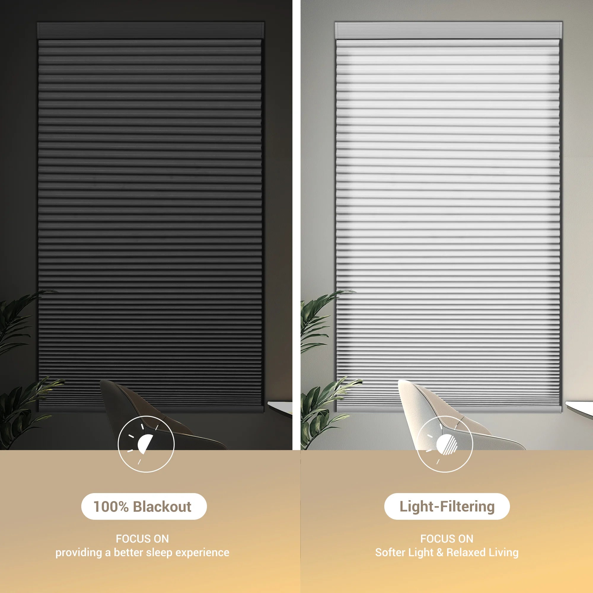 Our Honeycomb Shades offer superior insulation, UV protection, and noise reduction. Stay cool in summer and warm in winter — all while enjoying a sleek, modern look that elevates any room.